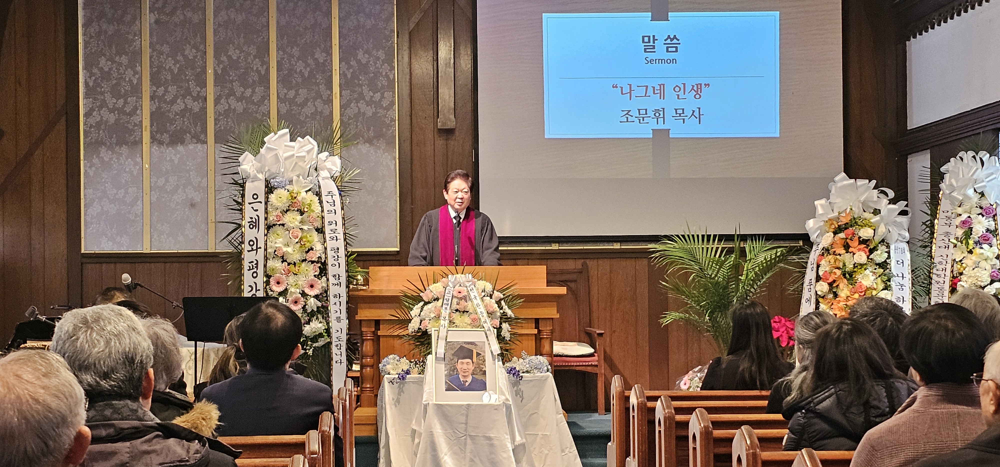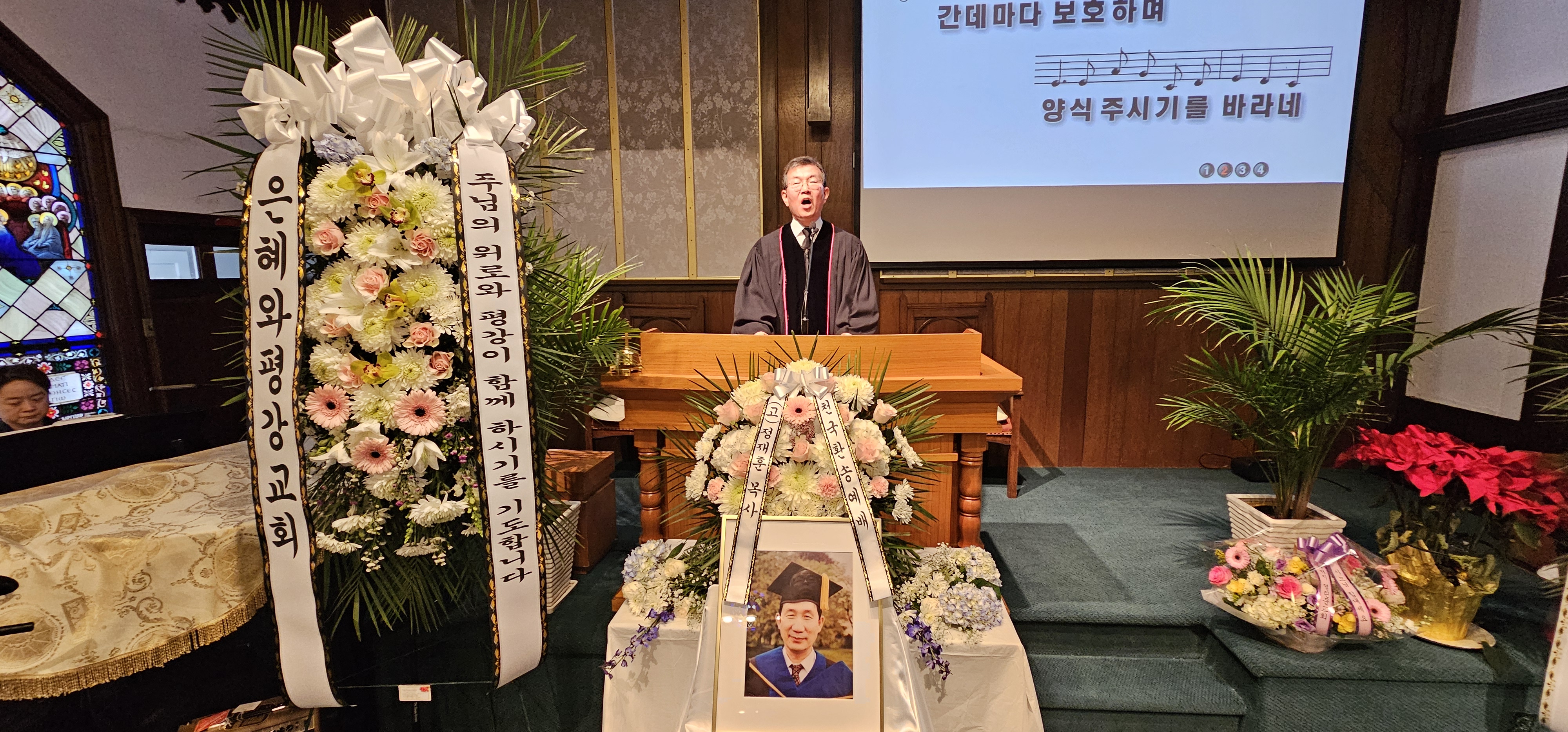 교회 행사 은혜와평강교회 제 1대 목사이신 (고)정재훈목사님의 장례예배가 많은 조문객들이 참석한 가운데 은혜와평강교회 본당에서 엄숙하게 거행 되었습니다.(2024년 1월 23일) by 알 수 없는 사용자 2024. 1. 25. 은혜와평강교회 제 1대 목사이신 (고)정재훈목사님의 장례예배가 많은 조문객들이 참석한 가운데 은혜와평강교회 본당에서 엄숙하게 거행 되었습니다.(2024년 1월 23일) 공유하기 게시글 관리 은혜와 평강 교회 '교회 행사' 카테고리의 다른 글 은혜와평강교회 컨시스토리에서는 필그림선교교회에서 파송하신 황은숙집사님을 우리교회 (인턴)전도사님으로 임명 하였습니다. (2024년 3월 24일) (0) 2024.03.25 북한기독교총연합회 회장이신 정형진목사님 (뉴코리아교회)께서 북한선교에 대한 말씀을 전해주시고 친교후에 탈북민교회와 북한선교에 대한 세미나를 진행하였습니다. ( 2024년 2월 18일) (0) 2024.02.23 은혜와평강교회 제직세미나 에서 많은 제직들이 모인 가운데 뉴져지 동산교회 윤명호 목사님께서 귀한 말씀을 전해 주셨습니다.(2024년 1월 21일) (0) 2024.01.23 은혜와평강교회 1월 생일자 축하 🎂 잔치가 많은 교인들의 축하 속에서 있었습니다 .(2024년 1월 21일) (0) 2024.01.23 은혜와평강교회 2024년 서리집사 13명의 재직임명식이 본당에서 거행 되었습니다. (2024년 1월 15일) (0) 2024.01.15 관련글 은혜와평강교회 컨시스토리에서는 필그림선교교회에서 파송하신 황은숙집사님을 우리교회 (인턴)전도사님으로 임명 하였습니다. (2024년 3월 24일) 북한기독교총연합회 회장이신 정형진목사님 (뉴코리아교회)께서 북한선교에 대한 말씀을 전해주시고 친교후에 탈북민교회와 북한선교에 대한 세미나를 진행하였습니다. ( 2024년 2월 18일) 은혜와평강교회 제직세미나 에서 많은 제직들이 모인 가운데 뉴져지 동산교회 윤명호 목사님께서 귀한 말씀을 전해 주셨습니다.(2024년 1월 21일) 은혜와평강교회 1월 생일자 축하 🎂 잔치가 많은 교인들의 축하 속에서 있었습니다 .(2024년 1월 21일) 댓글