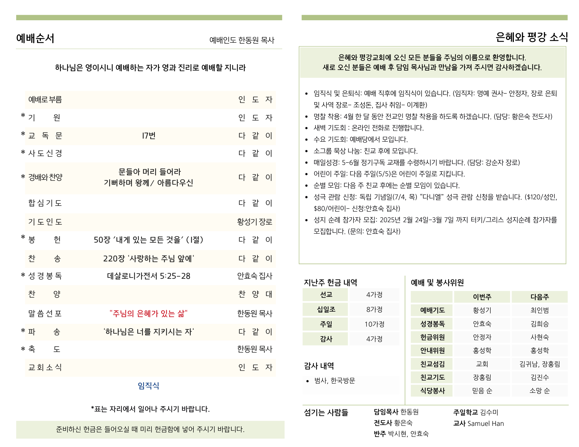• 어린이 주일: 다음 주일(5/5)은 어린이 주일로 지킵니다.