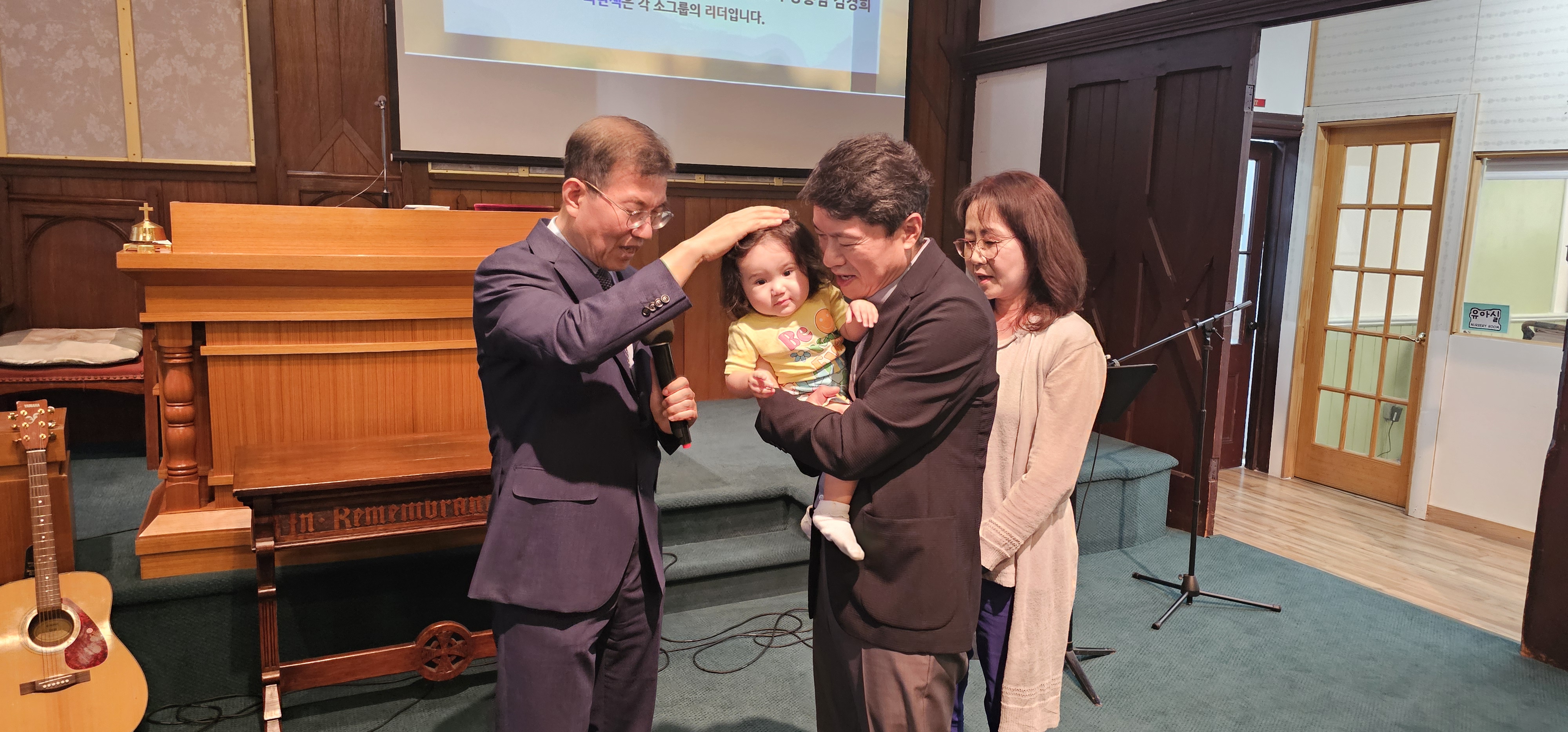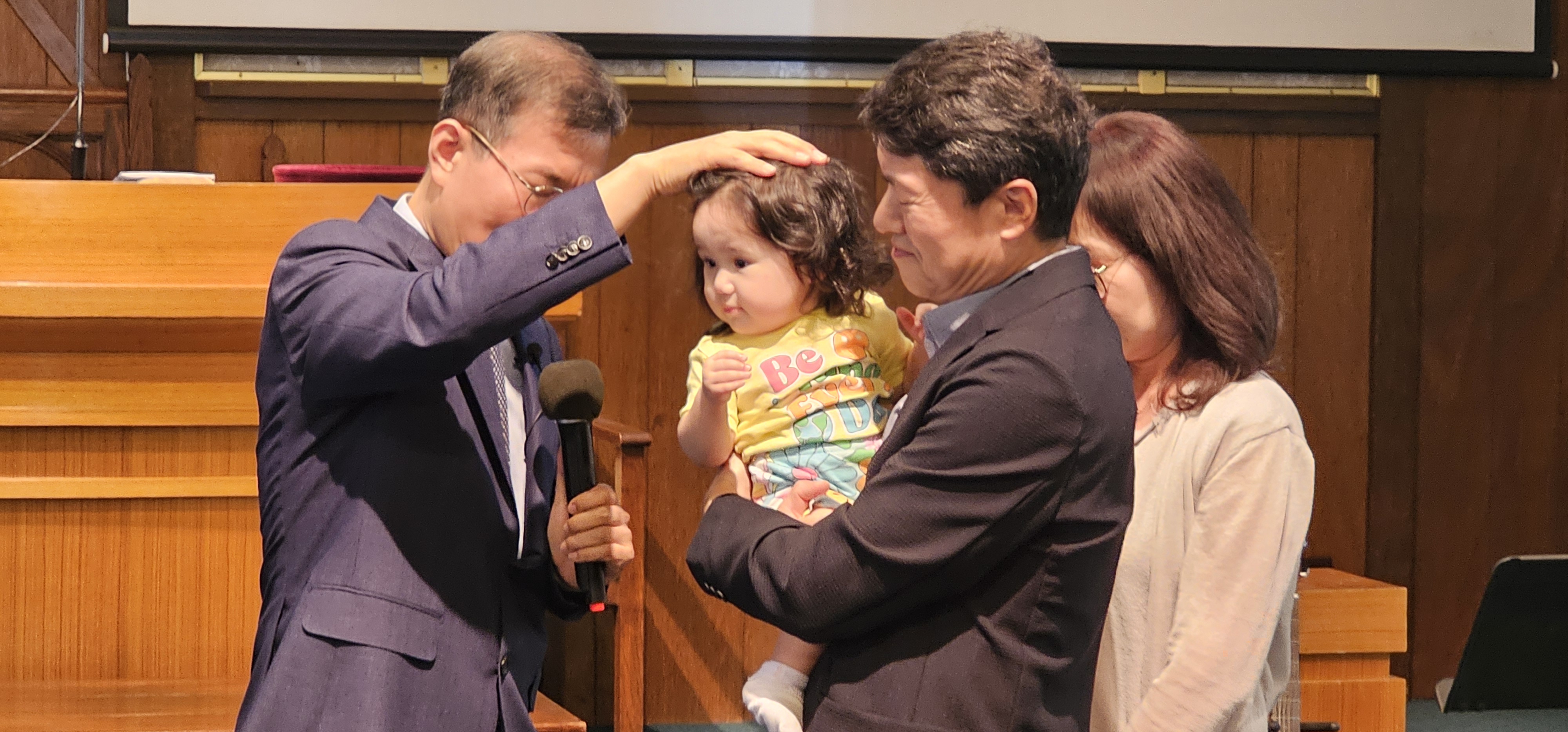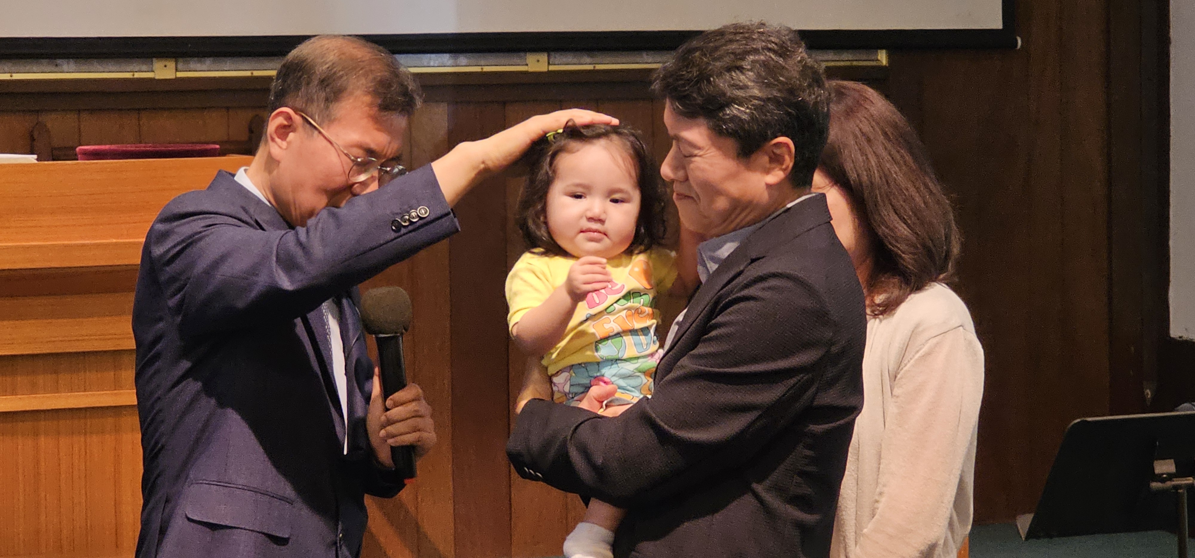 최인범 장로님 손녀 예린이가 교회에 방문하여 한동원목사님의 축복기도를 받고있습니다(2024년 8월 25일)