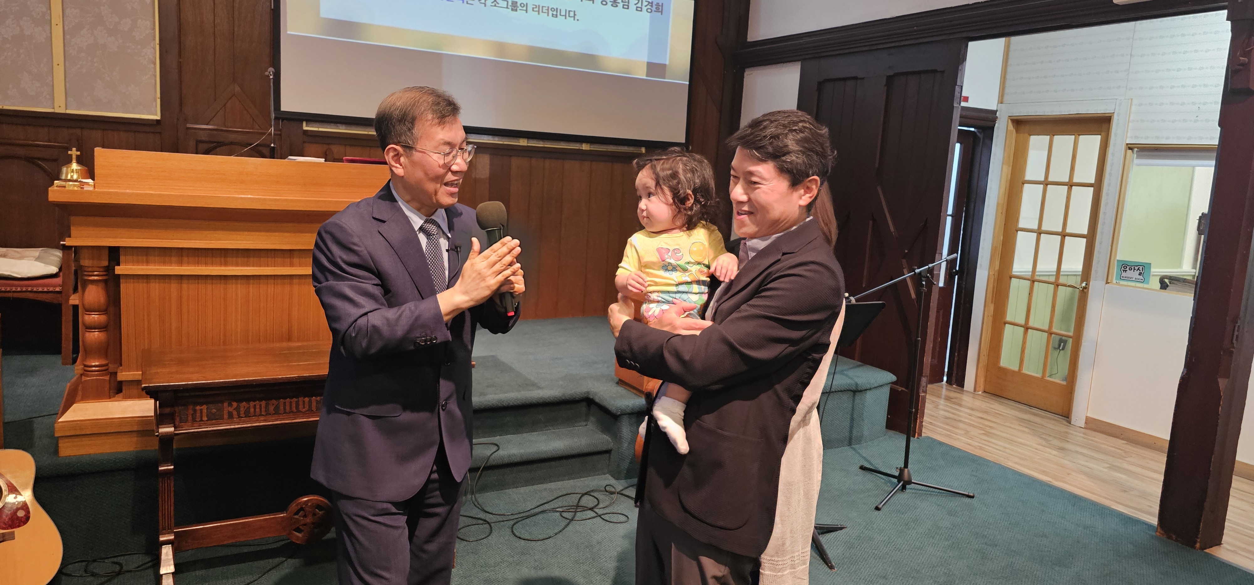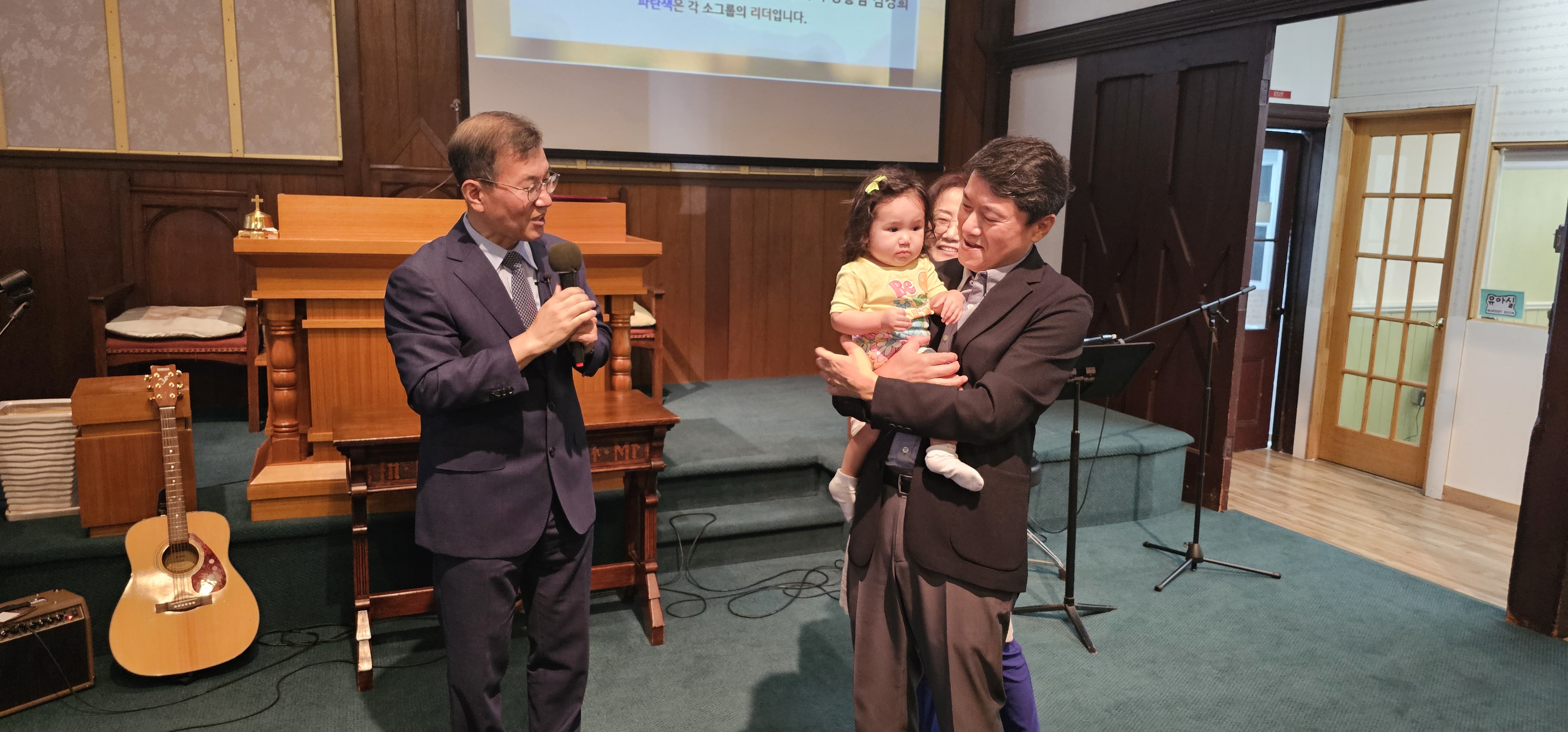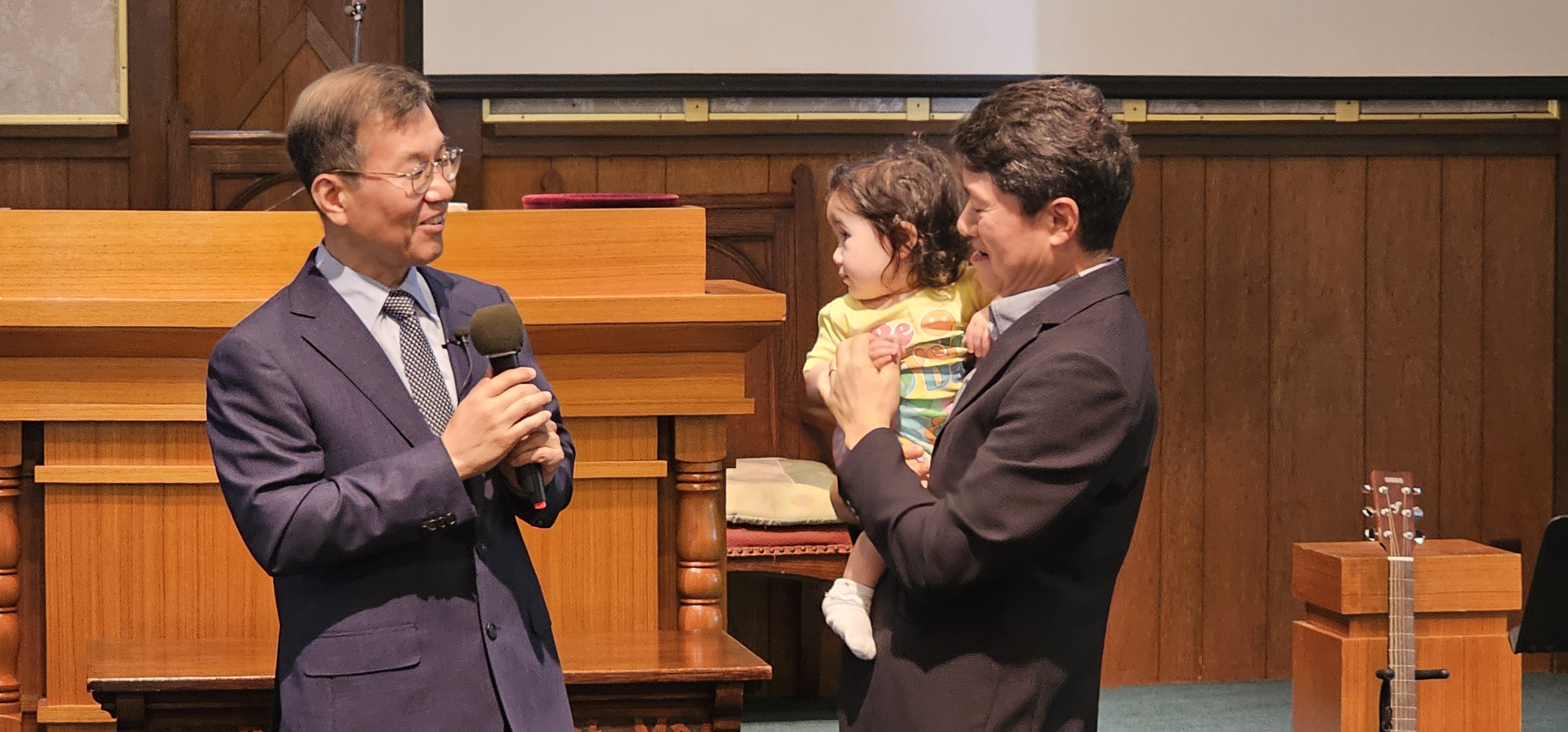 최인범 장로님 손녀 예린이가 교회에 방문하여 한동원목사님의 축복기도를 받고있습니다(2024년 8월 25일)