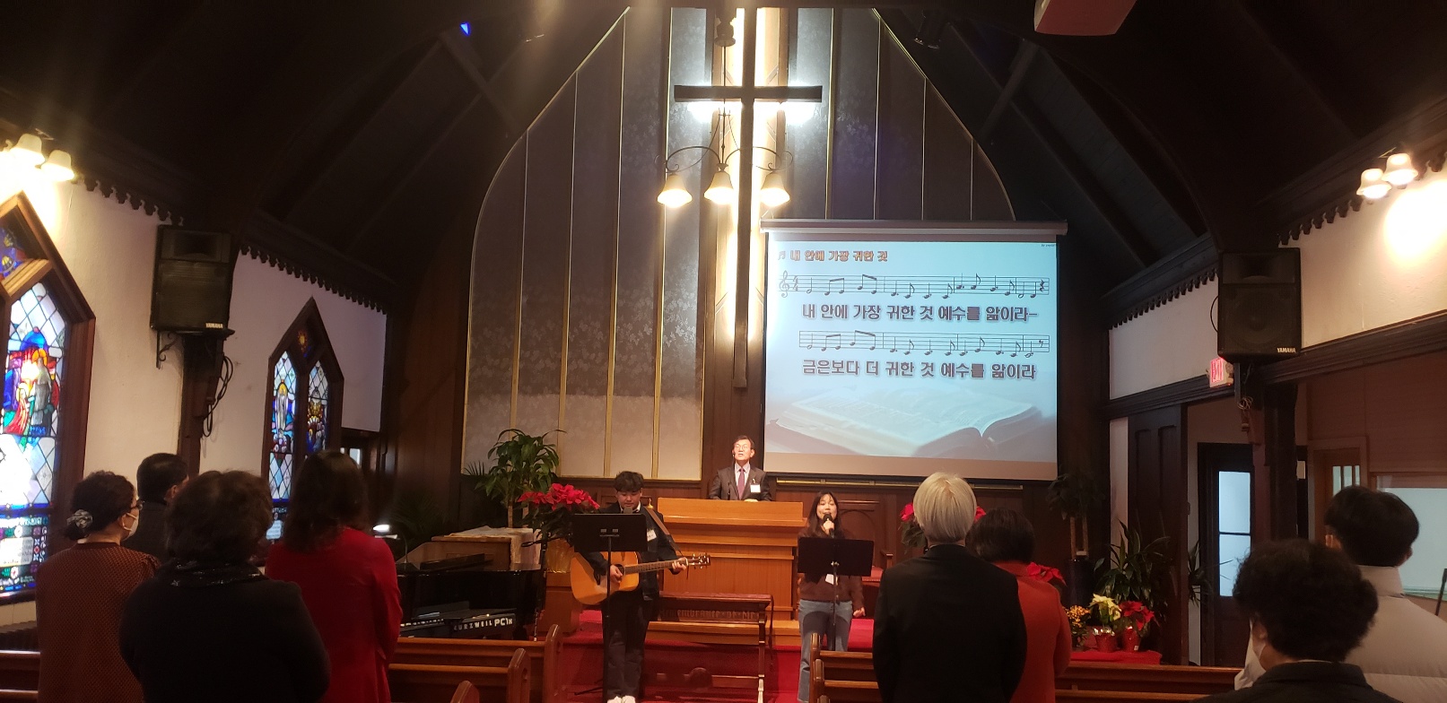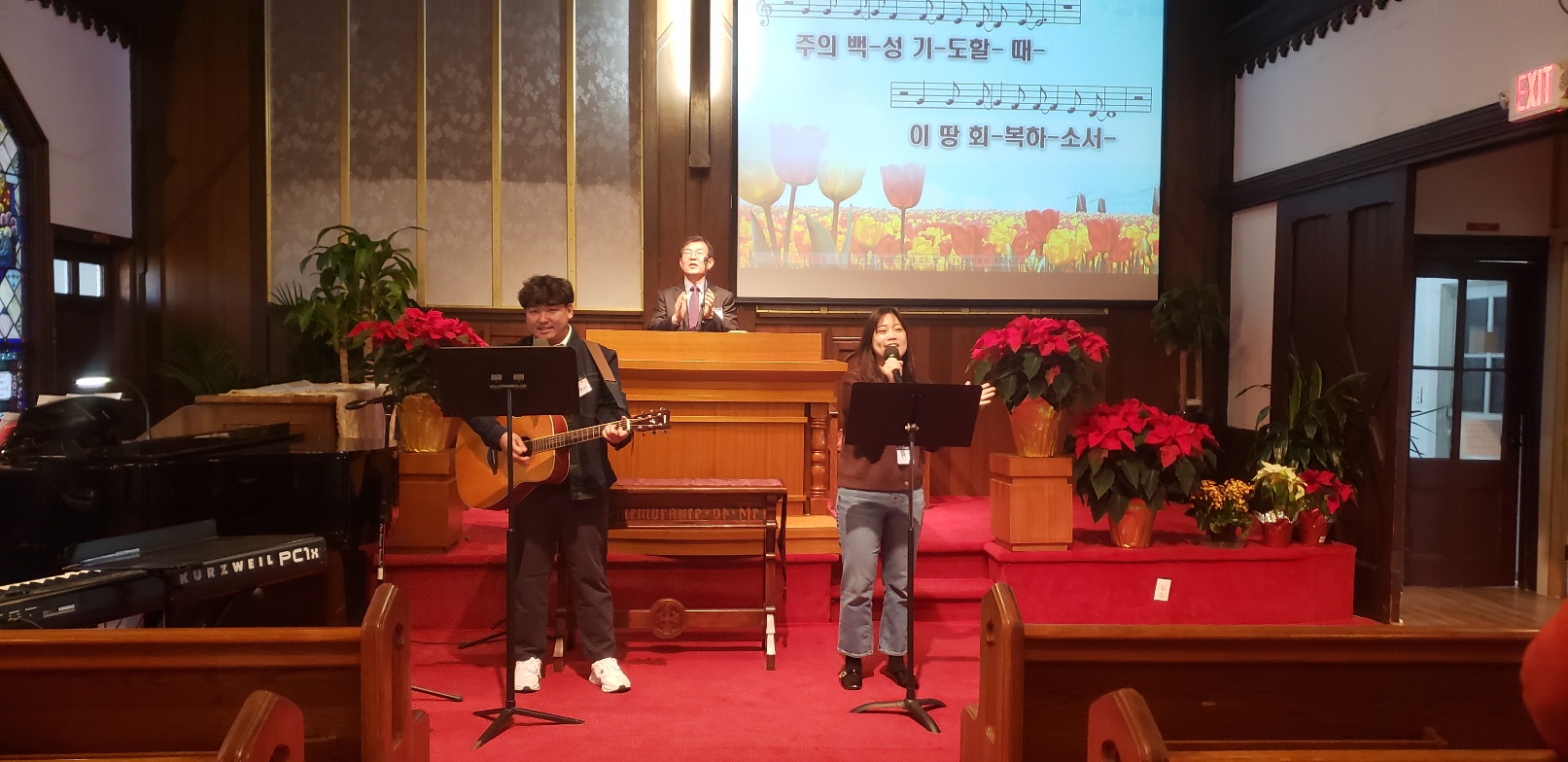 은혜와 평강교회 경배와 찬양을 열정적으로 인도하시는 부부집사님의 모습입니다.