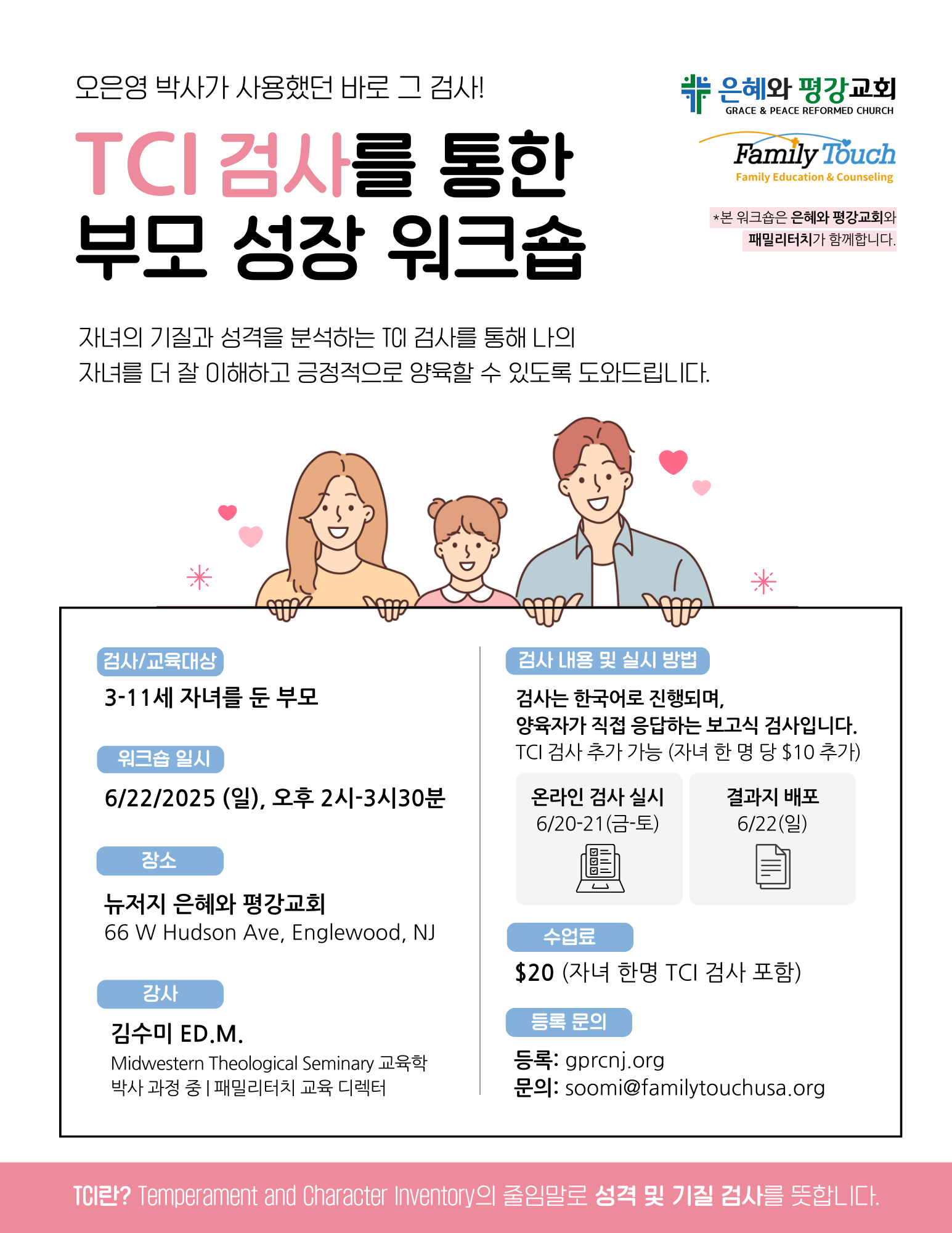 자녀의 기질과 성격을 분석하는 TCI 검사를 통해 나의 자녀를 더 잘이해하고 긍정적으로 양육할 수 있도록 도와드립니다.